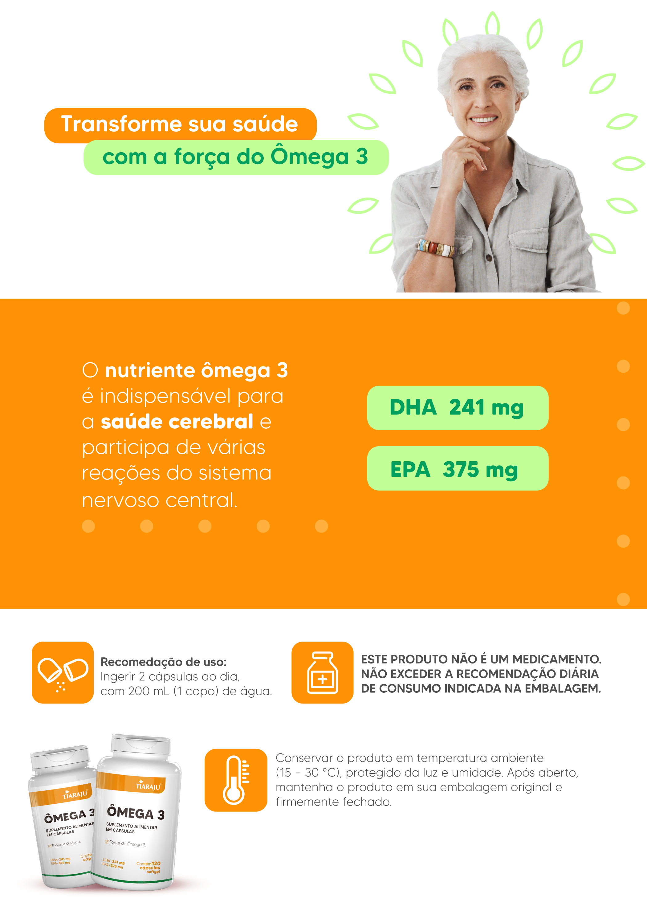 O nutriente ômega 3 é indispensável para a saúde cerebral e participa de várias reações do sistema nervoso central. Fonte de ômega 3.